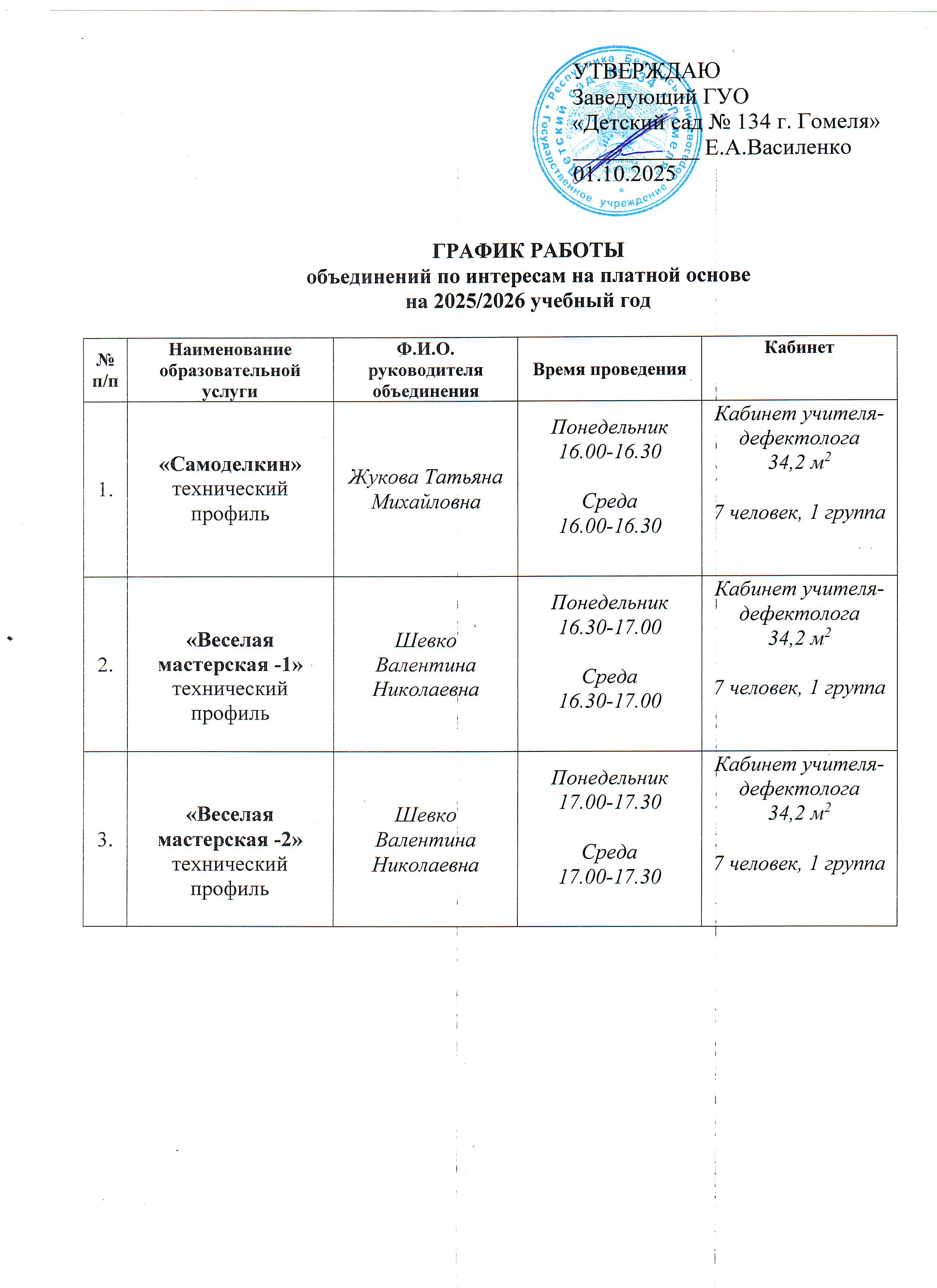 График приёма администрации ГУО "Детский сад №134 г.Гомеля"