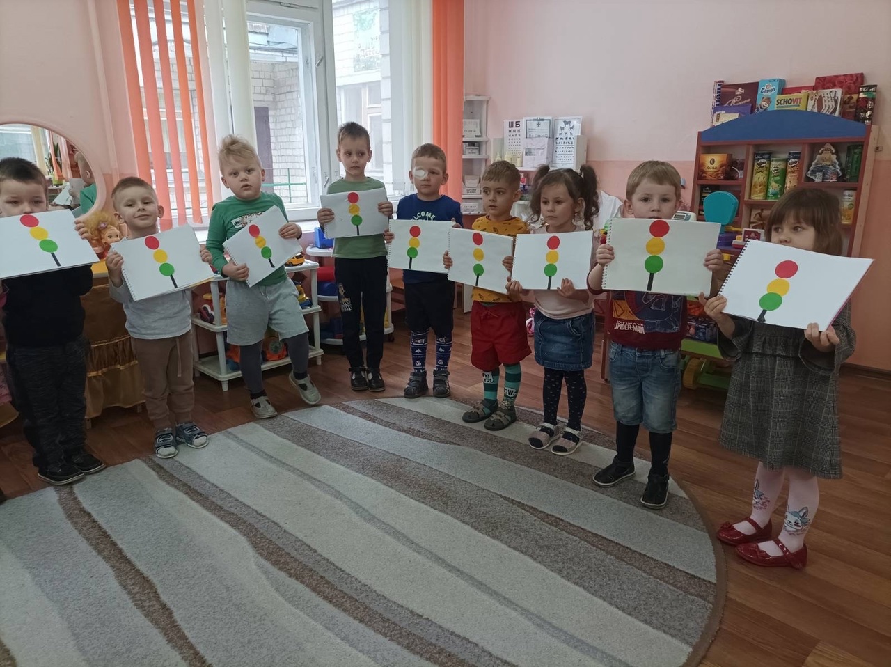 Задачи:- Закрепить представления детей о светофоре, о его сигналах;Развивать связную речь, зрительное восприятие и внимание. Воспитывать культуру поведения в общественном транспорте, на улице и дороге;
