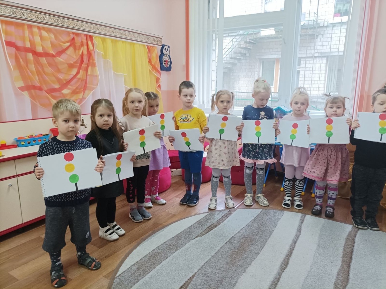 Задачи:- Закрепить представления детей о светофоре, о его сигналах;Развивать связную речь, зрительное восприятие и внимание. Воспитывать культуру поведения в общественном транспорте, на улице и дороге;