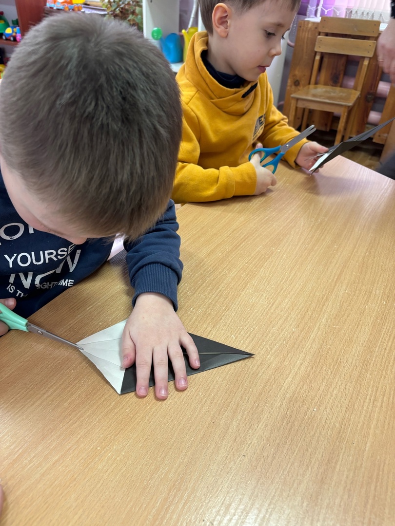 - Развивать умение вырезать силуэт птицы по контуру, складывать бумагу гармошкой.